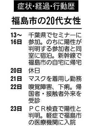 千葉県での宿泊先は2人部屋で、同室だった県外のセミナー参加者は18日に感染が確認され、女性は濃厚接触者とされた。だが、県外の保健所から濃厚接触者の連絡が福島市保健所に寄せられたのが22日と遅かった。