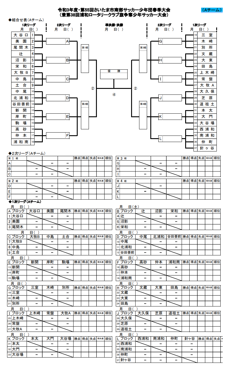 からの記事と詳細 ( 2021年度第55回さいたま市南部サッカー少年団大会春季大会 兼浦和ロータリー旗争奪少年サッカー大会【Aチーム】組合せ掲載!4/3~開催 - ジュニアサッカーニュース )