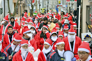 「サンタラン」は参加者がサンタクロース姿で街中を練り歩き、参加費の一部を闘病中の子どもたちへのクリスマスプレゼント代に充てるチャリティーイベント。英国エディンバラ発祥で、日本でも大阪や東京など全国で広がりつつある。2019年、初めて郡山市で行われた。今年は新型コロナウイルス感染防止のためパレードは行わず、ライブ配信によるオンラインコンサートを実施。子ども向けテレビ番組への楽曲提供や振り付け指導などで活躍するたにぞうさんが出演し、音楽ステージや絵本の読み聞かせを繰り広げる。そのほか、プレゼントの寄贈式や参加者を対象にした抽選会なども行う。